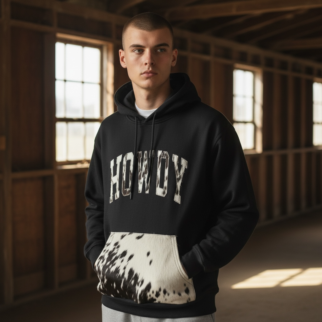 Howdy cowhide hoodie