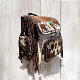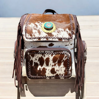 Turquoise cowhide & leather fringe backpack