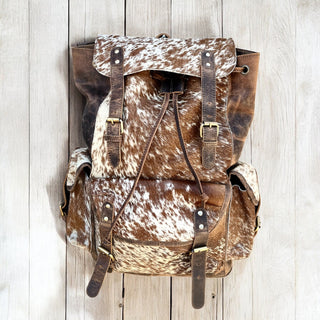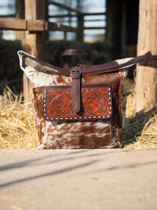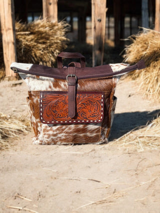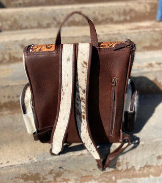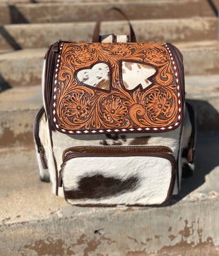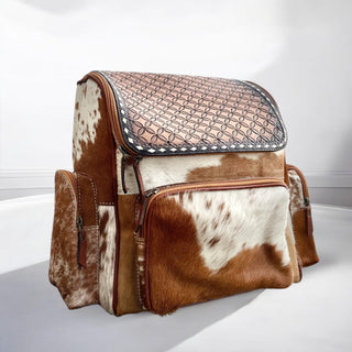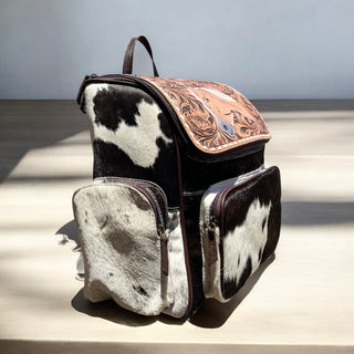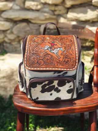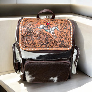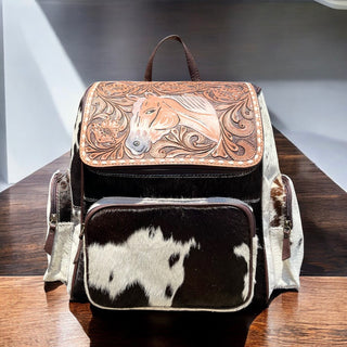 Horse tooled leather & cowhide backpack