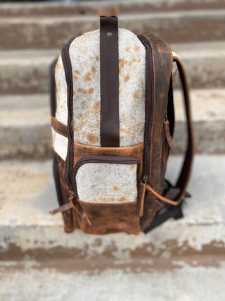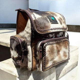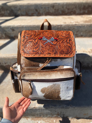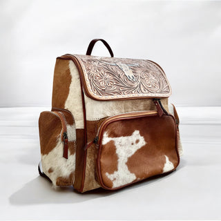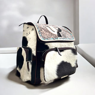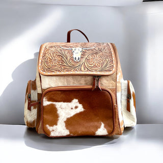 Bull tooled leather & cowhide backpack