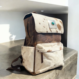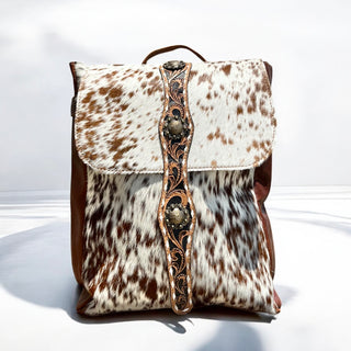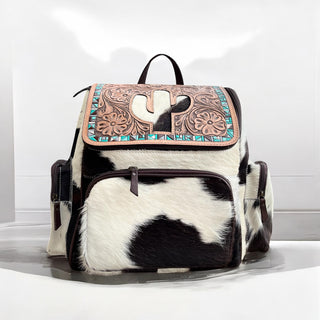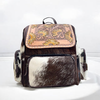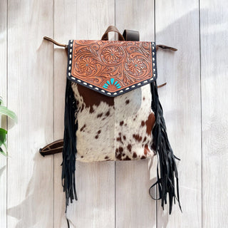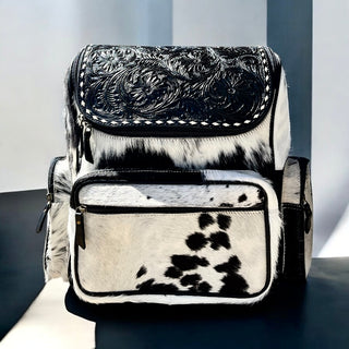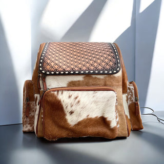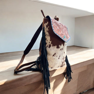 Cowhide & tooled leather backpack