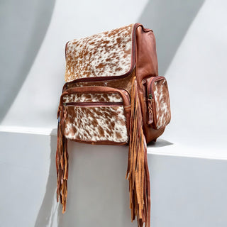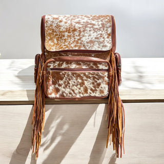 Tan all cowhide fringe backpack
