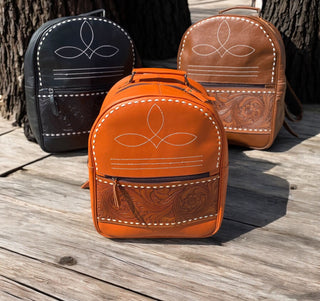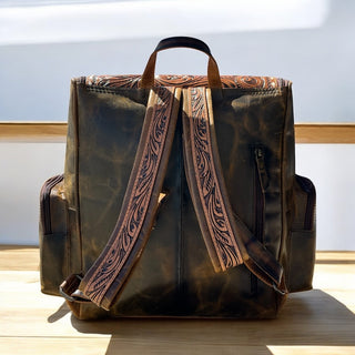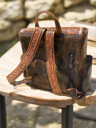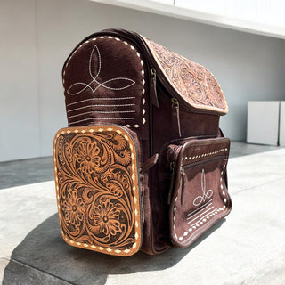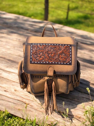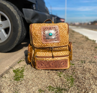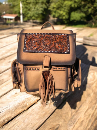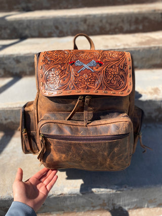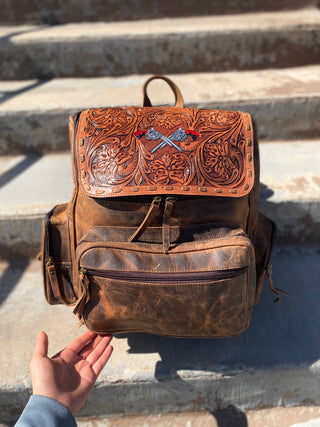 Cowboy hand tooled leather Backpack