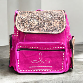 Pink tooled & cowhide backpack