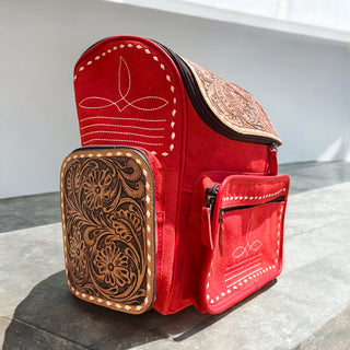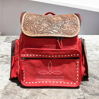Red tooled & cowhide backpack