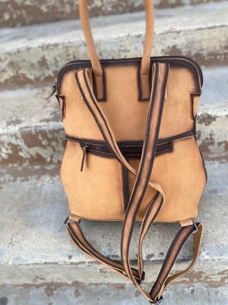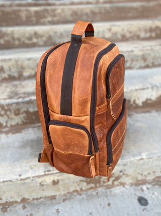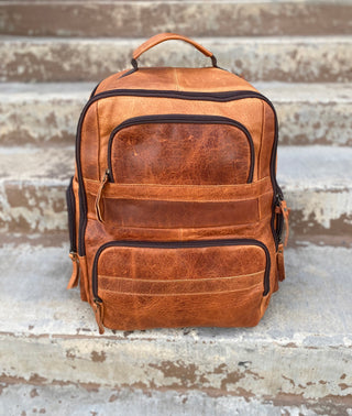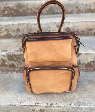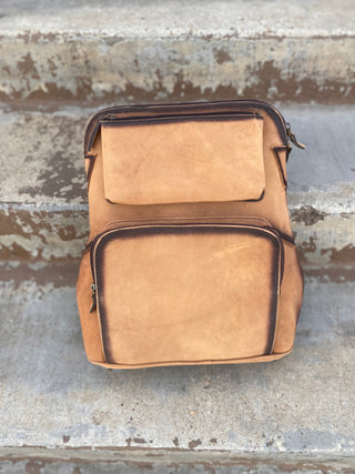 Tan rustic leather backpack