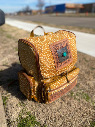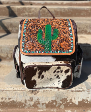 Arizona tooled leather & cowhide backpack