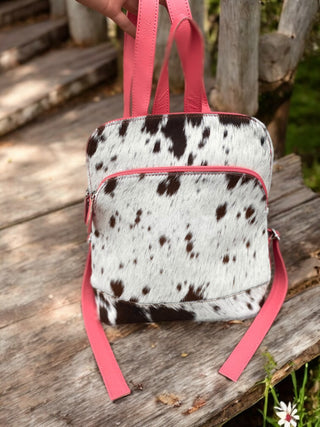 Pink cowhide & leather fringe backpack