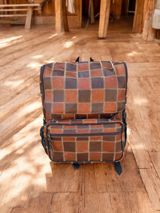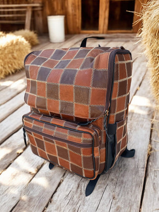 Checkered tooled & cowhide backpack