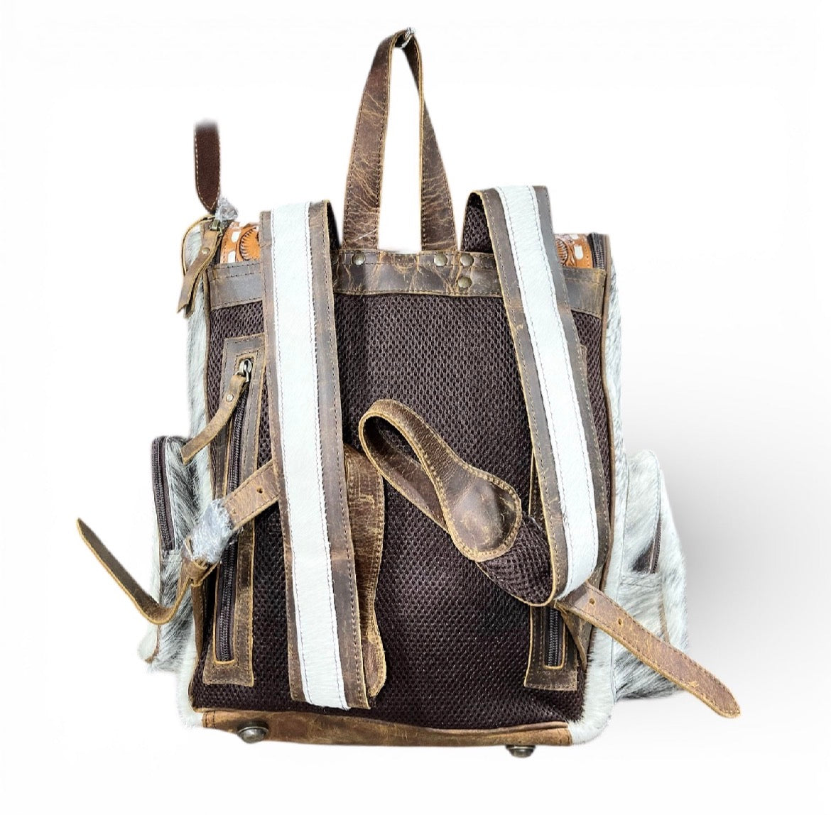 Crafted with premium hand-tooled leather and genuine cowhide, this backpack blends Western character with everyday functionality. Each piece features unique cowhide patterns, making no two backpacks exactly alike.