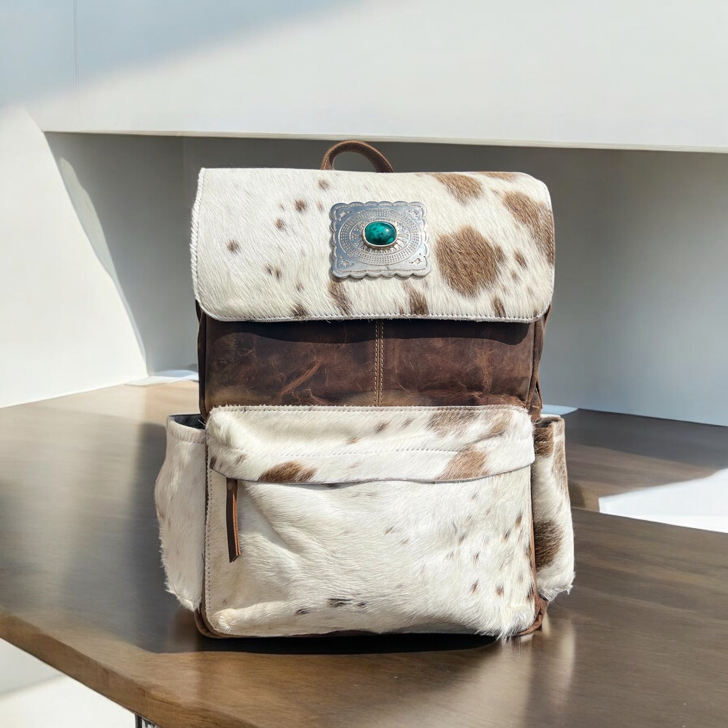 Concho cowhide & leather backpack