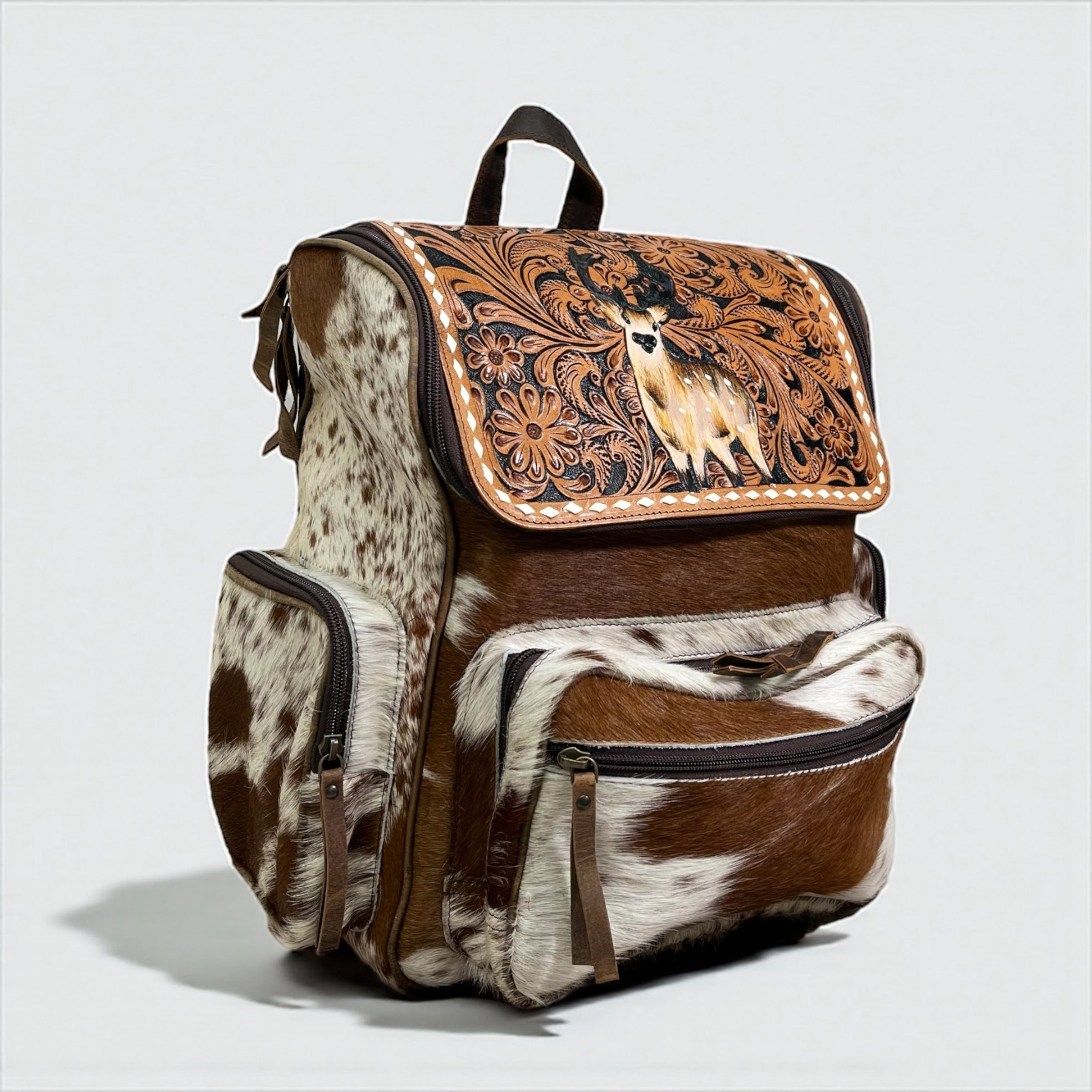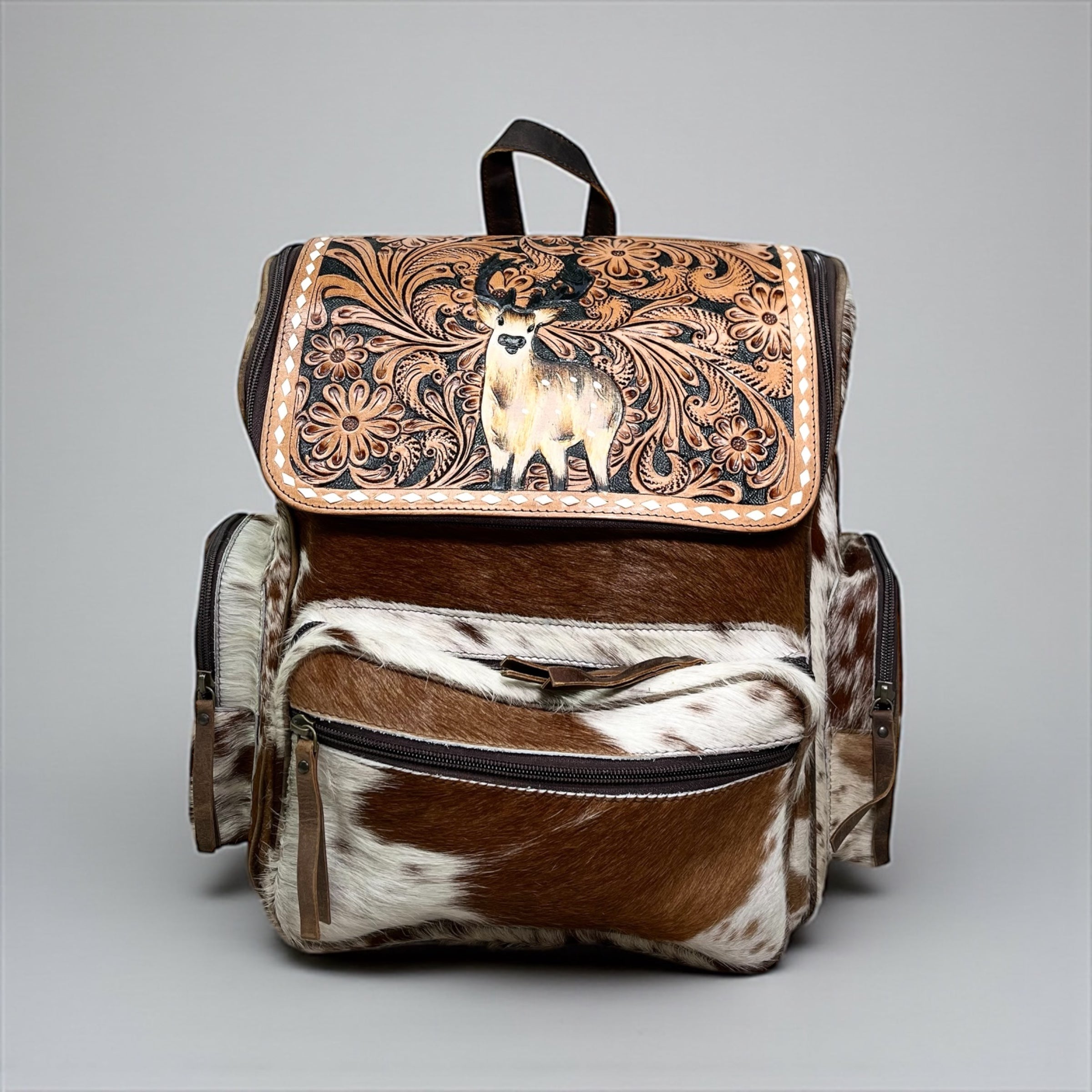 Deer tooled leather & cowhide backpack