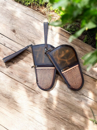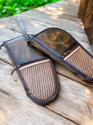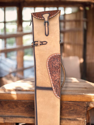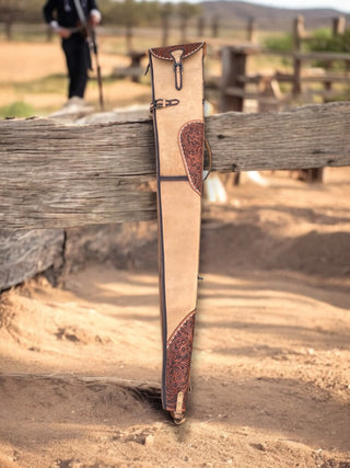 Introducing our premium carrying cases, expertly crafted from high-quality cowhide and intricately tooled leather. These cases combine durability with elegance, providing a sophisticated solution for transporting your essentials.