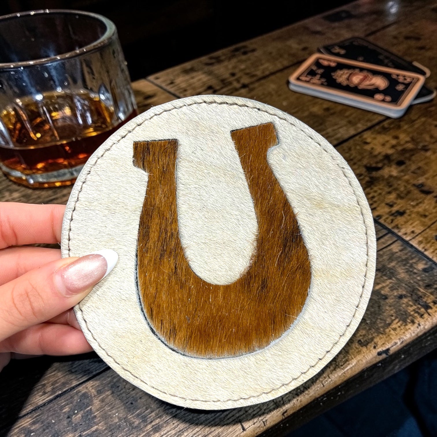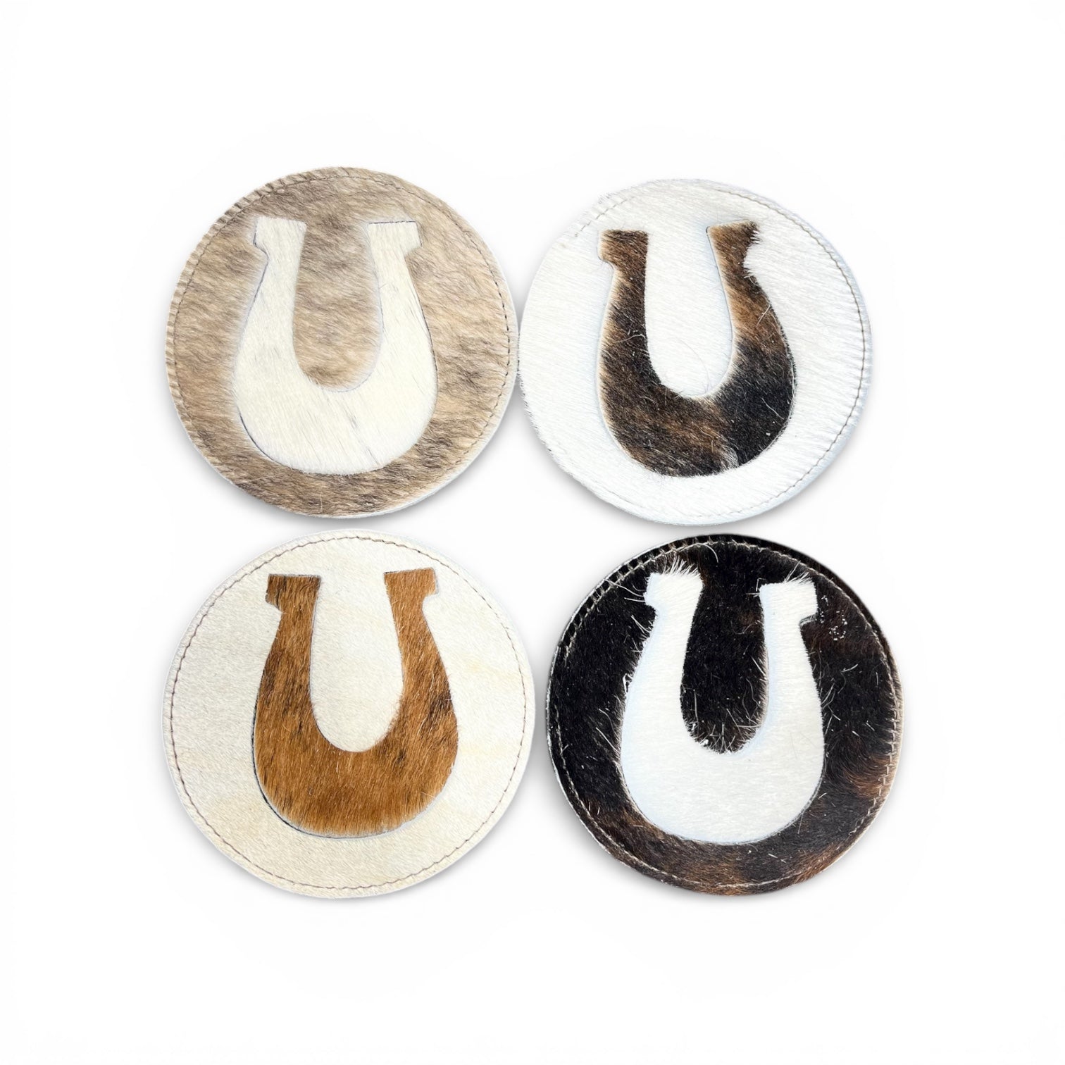 Horseshoe cowhide coaster (set of 4)