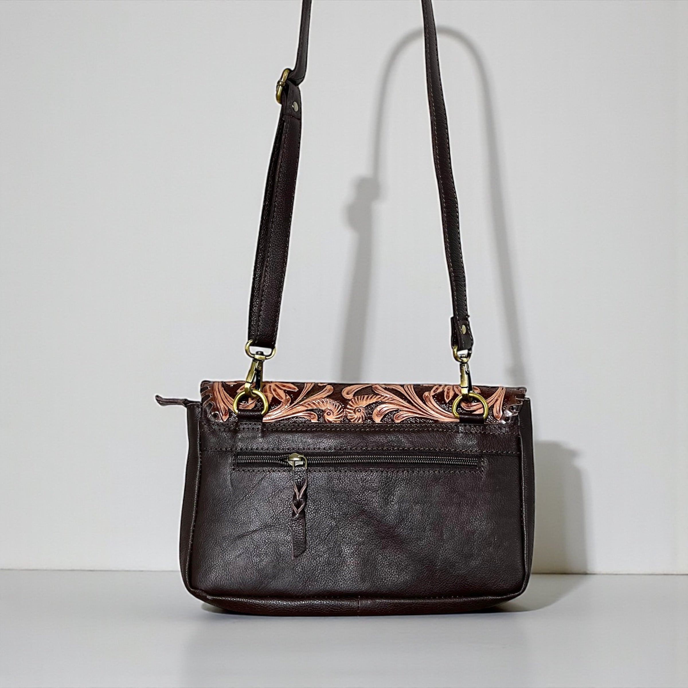 Handcrafted with genuine tooled leather and natural cowhide, this crossbody bag offers a perfect balance of western style and everyday functionality. Each piece is one of a kind due to the unique cowhide pattern. Compact yet practical, it’s ideal for carrying your daily essentials while on the go.