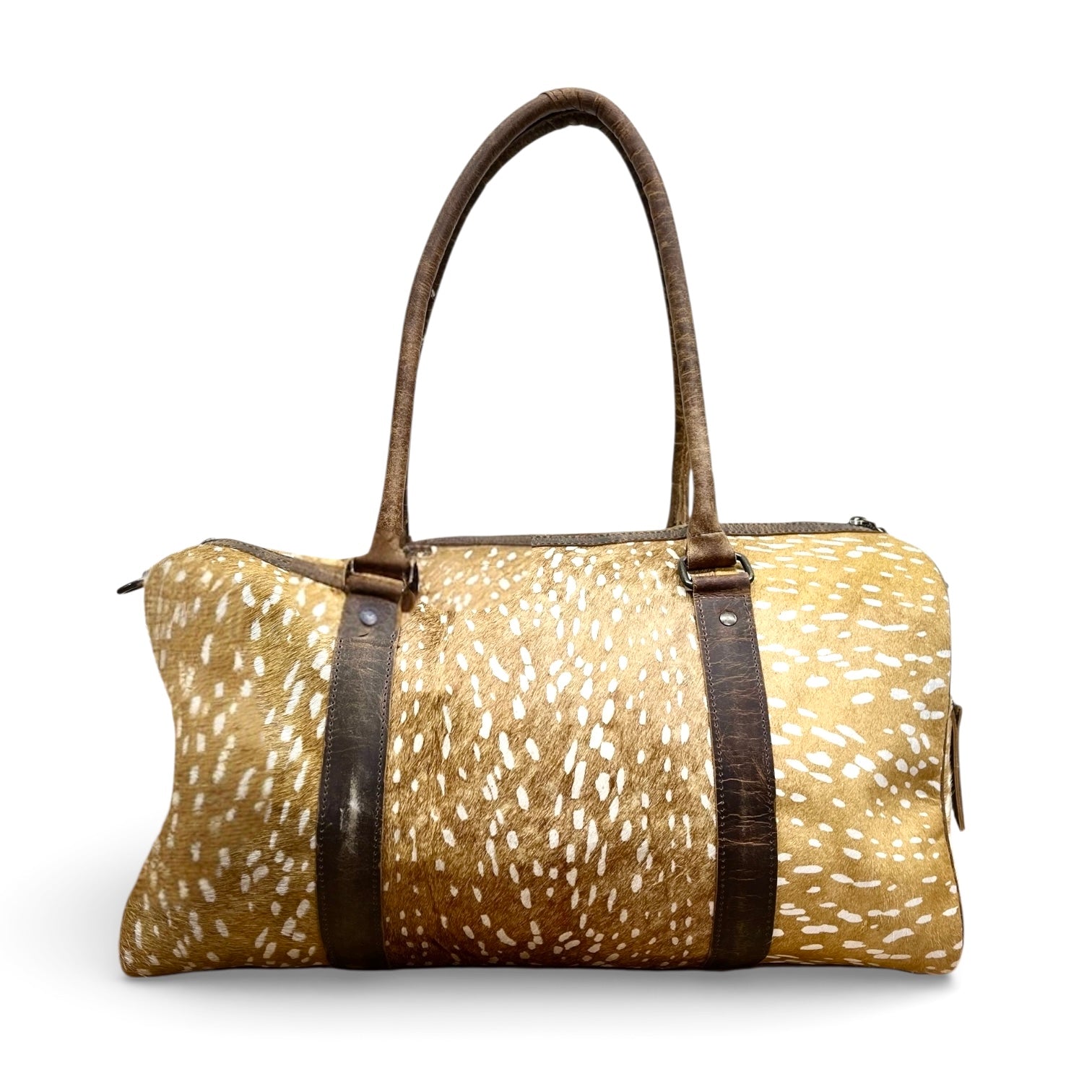 Deer print cowhide duffle bag