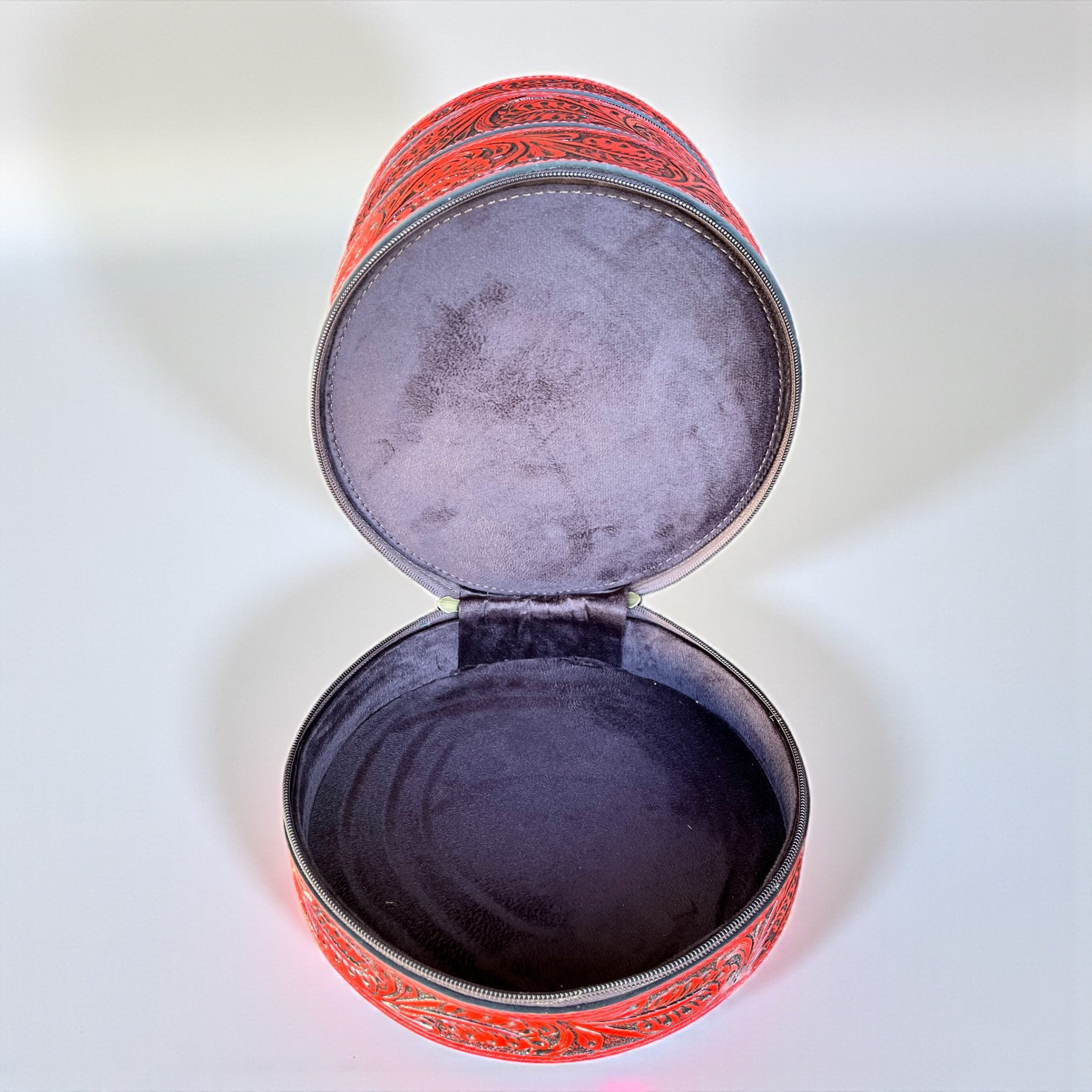 • Hand-tooled genuine leather jewelry box with a detailed floral western pattern