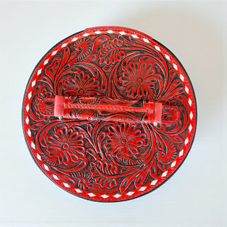 Red tooled leather jewelry box
