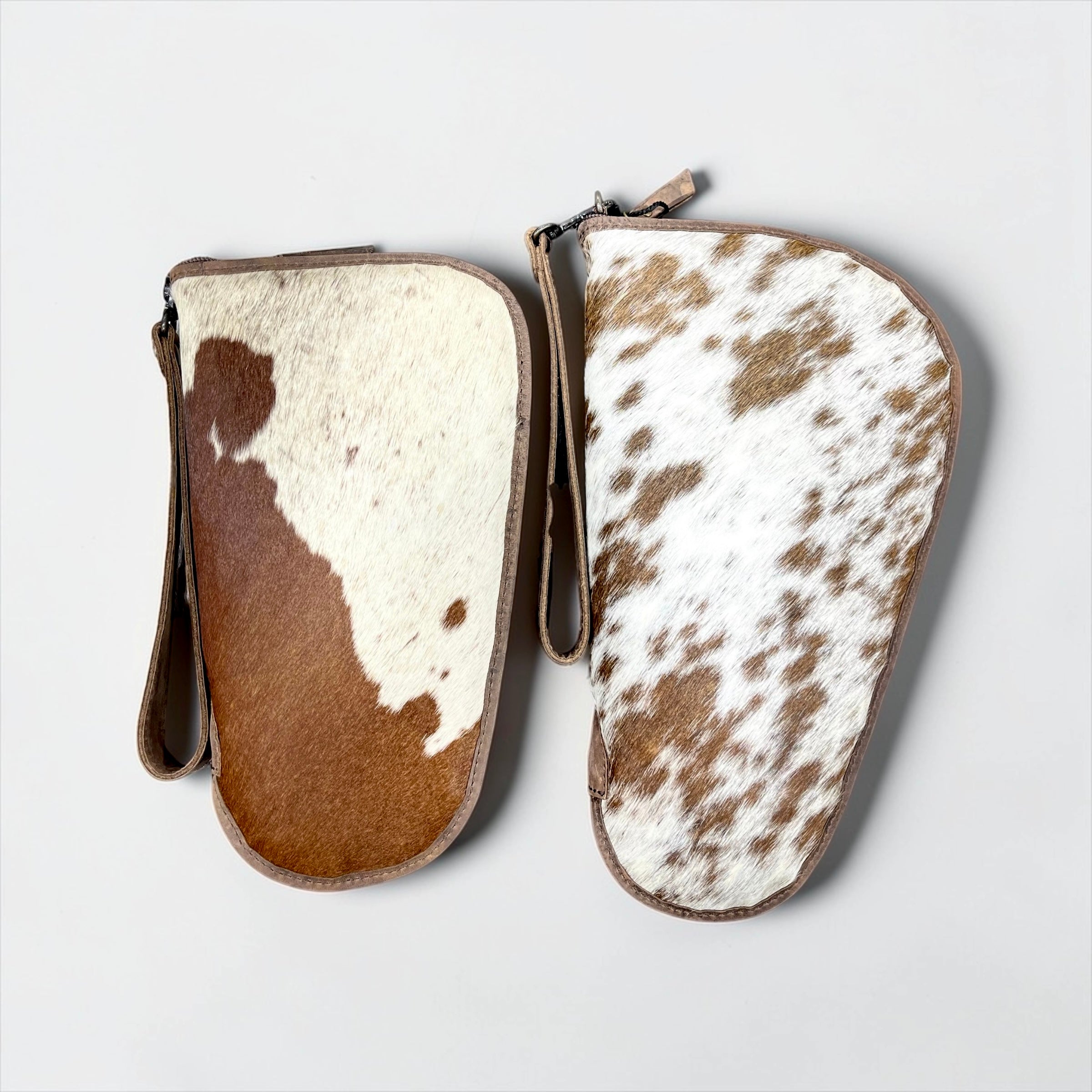 Handcrafted tooled leather & cowhide pistol case designed for both style and protection. Each piece features genuine cowhide, making every case one-of-a-kind with unique patterns that may vary. The detailed tooled leather adds a bold western touch while the durable construction helps protect your firearm from scratches and wear.