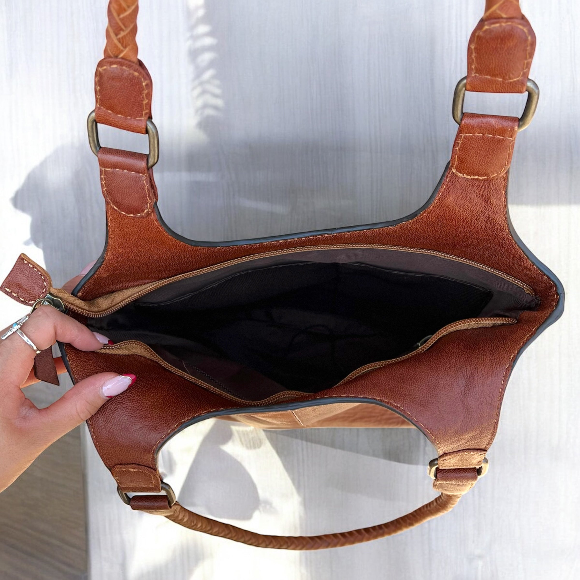 Brown all cowhide shoulder bag
