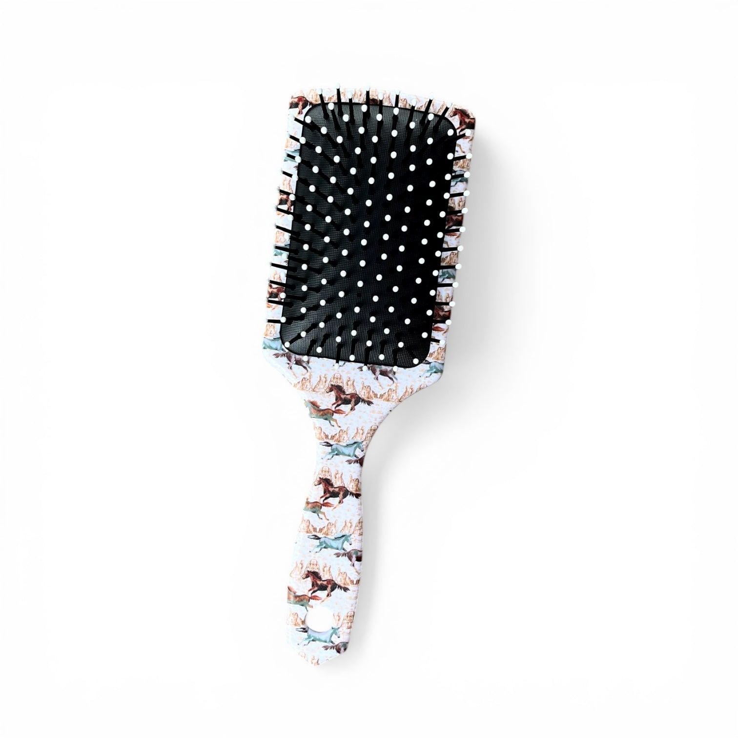 Keep your hair smooth and stylish with our Western-inspired hair brush. Crafted for durability and comfortable handling, this 8x4’’ brush is perfect for everyday grooming, whether at home or on the go. Its classic Western design adds a touch of rugged elegance to your routine.