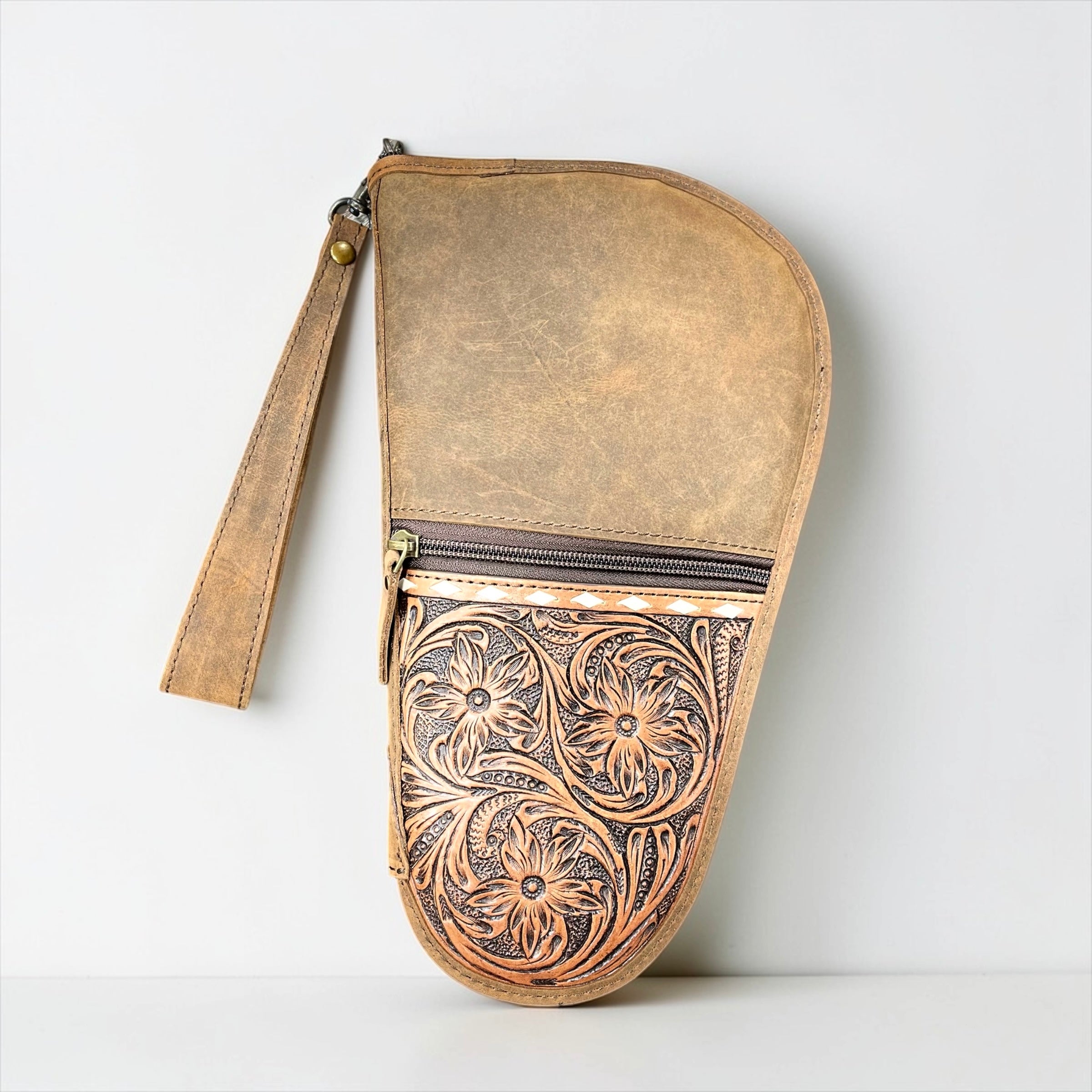 Rustic tooled leather pistol case