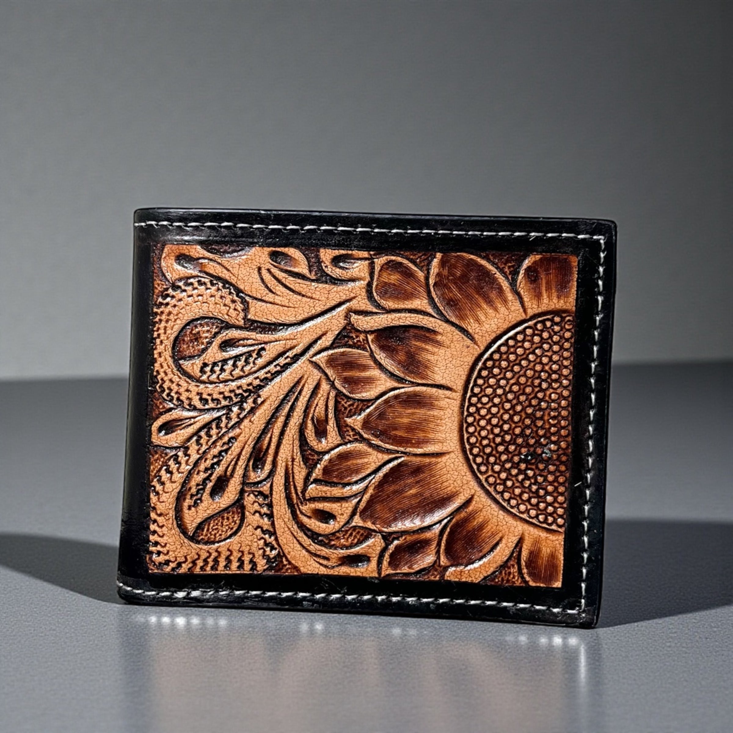 Our tooled leather men’s wallets are handcrafted from genuine leather and finished with detailed Western tooling for a timeless, rugged look. Designed to be both functional and durable, each wallet offers a compact profile that fits comfortably in your pocket while still providing space for your everyday essentials.