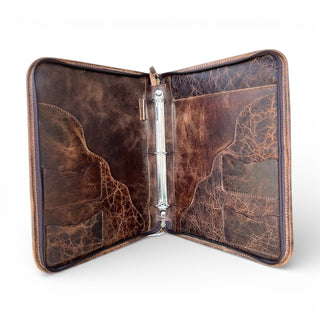 Cards tooled leather & cowhide zipper planner
