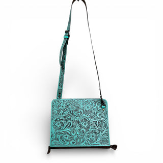 Turquoise checker tooled leather & cowhide portfolio