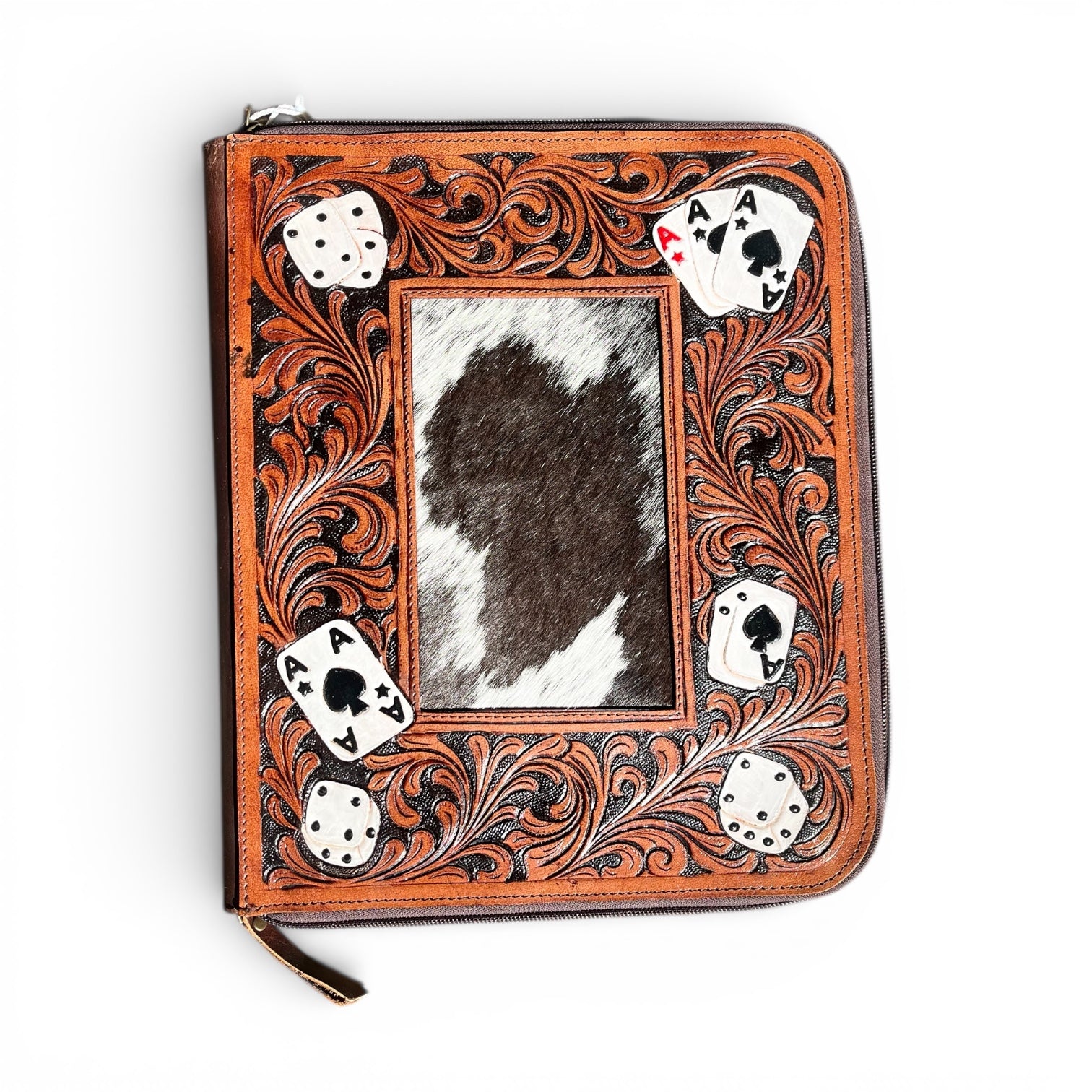 Cards tooled leather & cowhide zipper planner