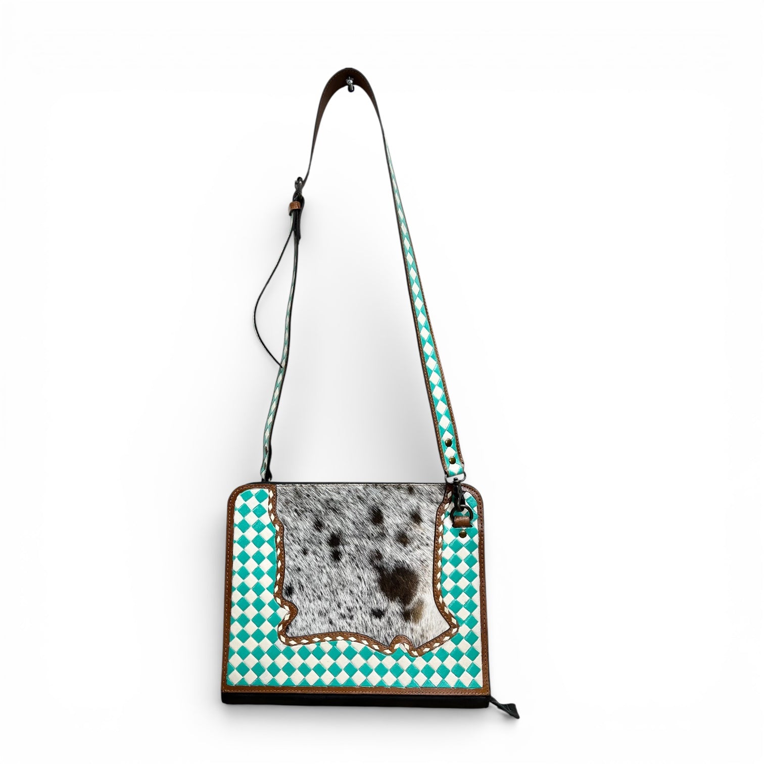 Turquoise checker tooled leather & cowhide portfolio