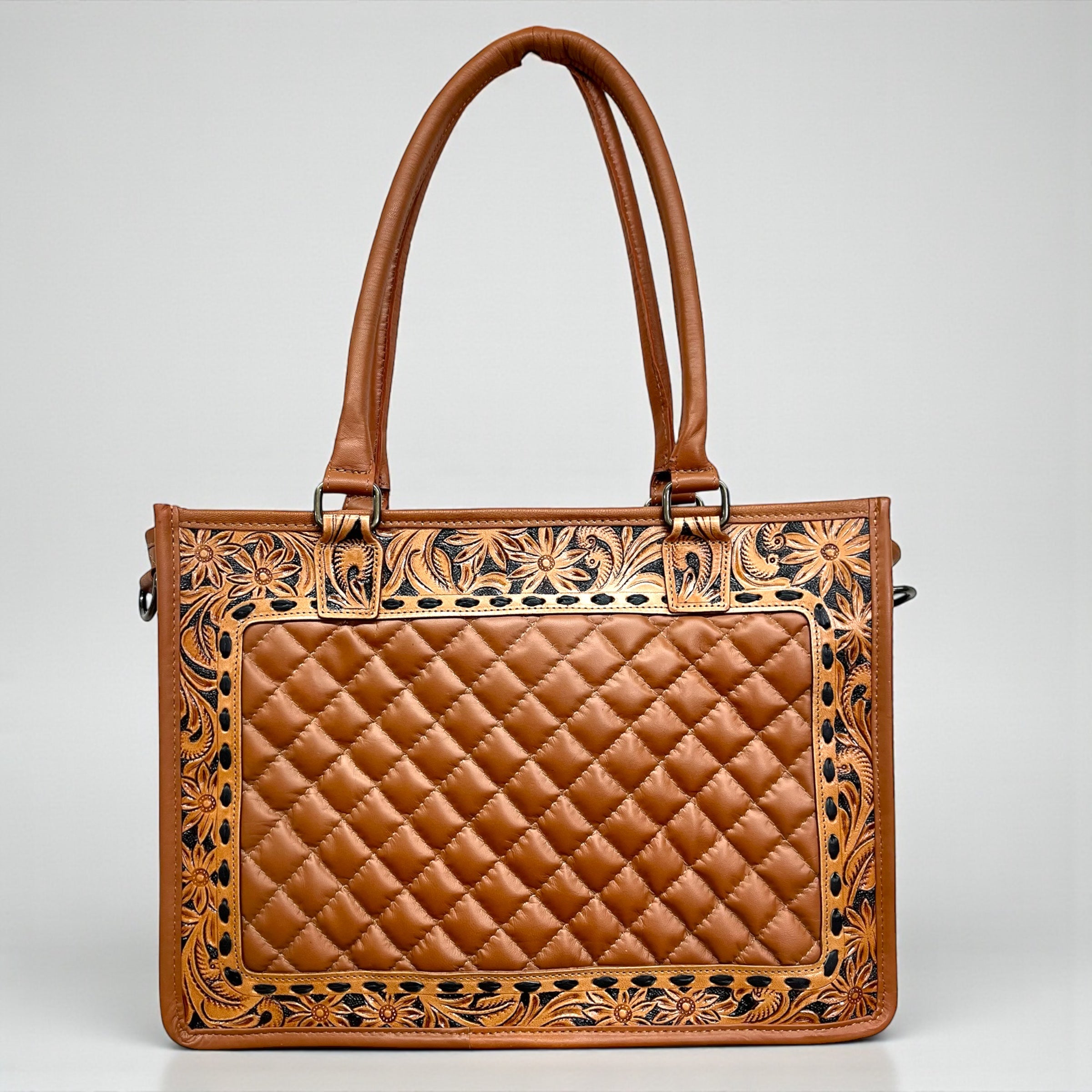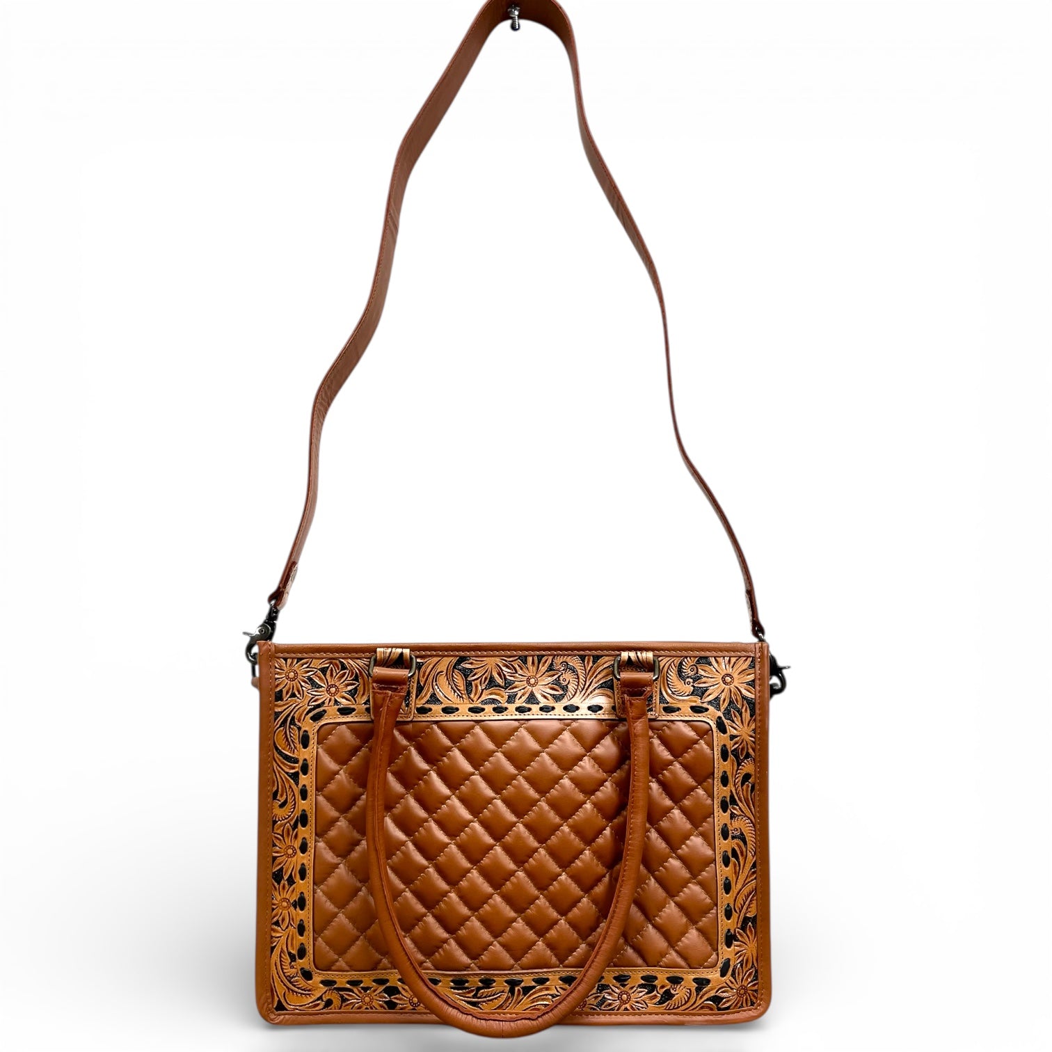 Carry timeless Western style wherever you go with this stunning tooled leather tote bag.