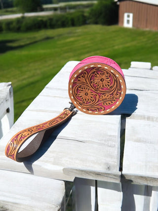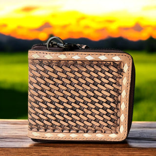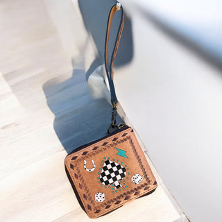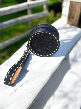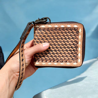 This exquisite Wristlet, crafted from premium tooled leather, combines elegance with functionality. Its intricate designs showcase artisanal craftsmanship, making it a stylish accessory for any occasion. The compact size is perfect for holding essentials like your phone, cards, and cash, while the secure zipper closure ensures your belongings are safe. With a convenient wrist strap, this wristlet offers hands-free versatility, making it an ideal companion for day trips or nights out.