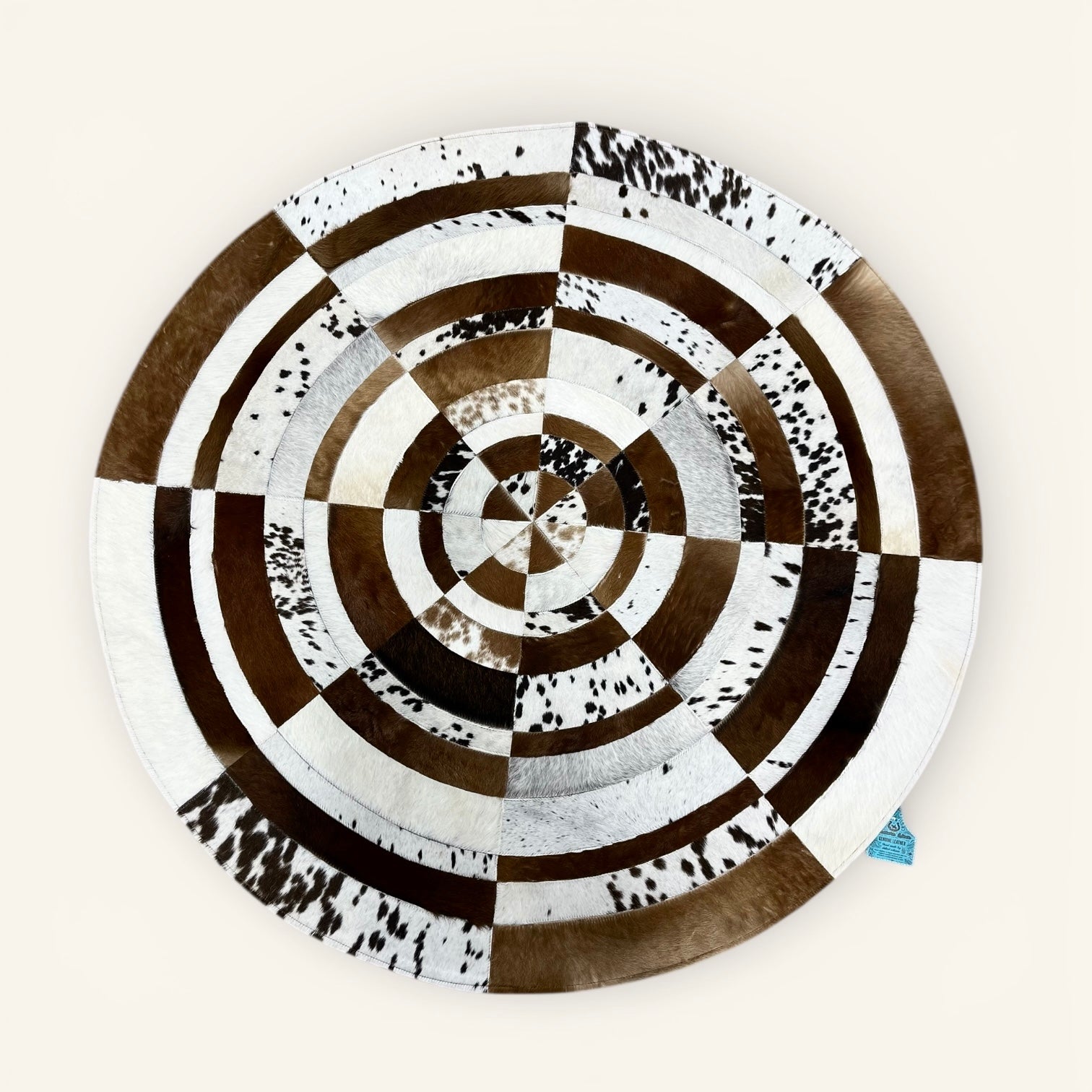 Bring warmth, texture, and one-of-a-kind style to your home with this 4x4’ cowhide patchwork rug. Handcrafted from genuine cowhide, each square is stitched together to create a unique pattern — no two rugs are exactly alike.