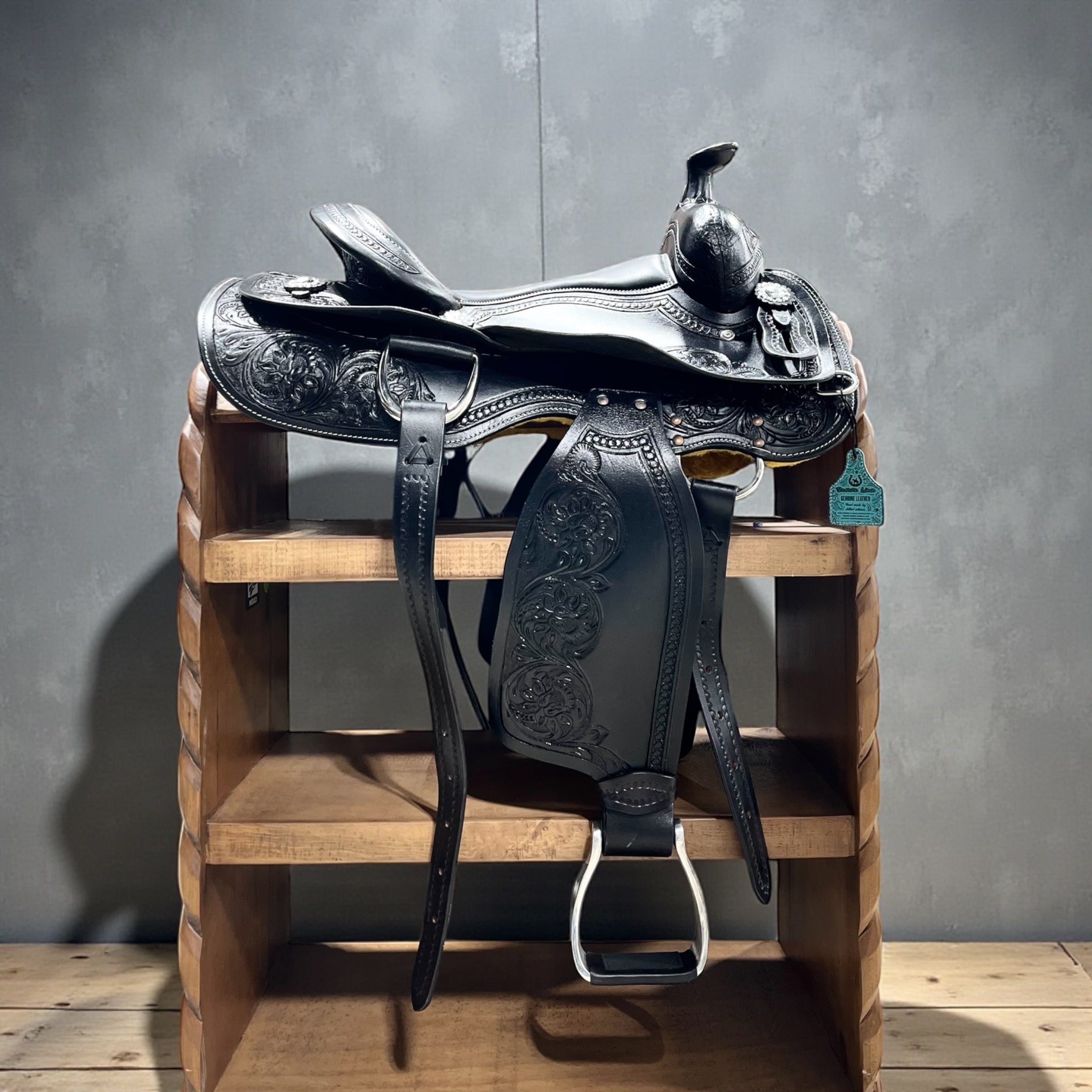 Ride in comfort and style with our Genuine Leather Saddle, crafted for durability, performance, and a true western feel. Made from premium full-grain leather, this saddle is built to age beautifully while standing up to everyday use. Its detailed tooling, secure seat, and balanced design provide a smooth, confident ride for both beginners and experienced riders.