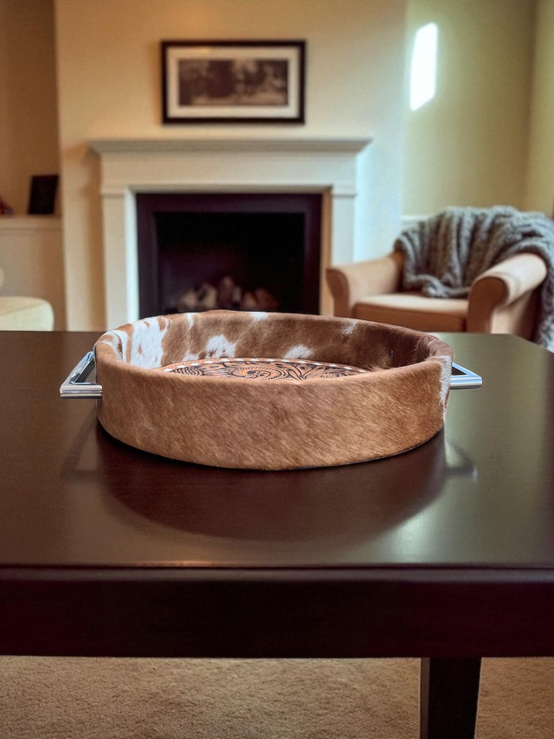 Elevate your space with our beautiful tooled leather and cowhide trays. Each piece is crafted with care, blending style and functionality effortlessly!